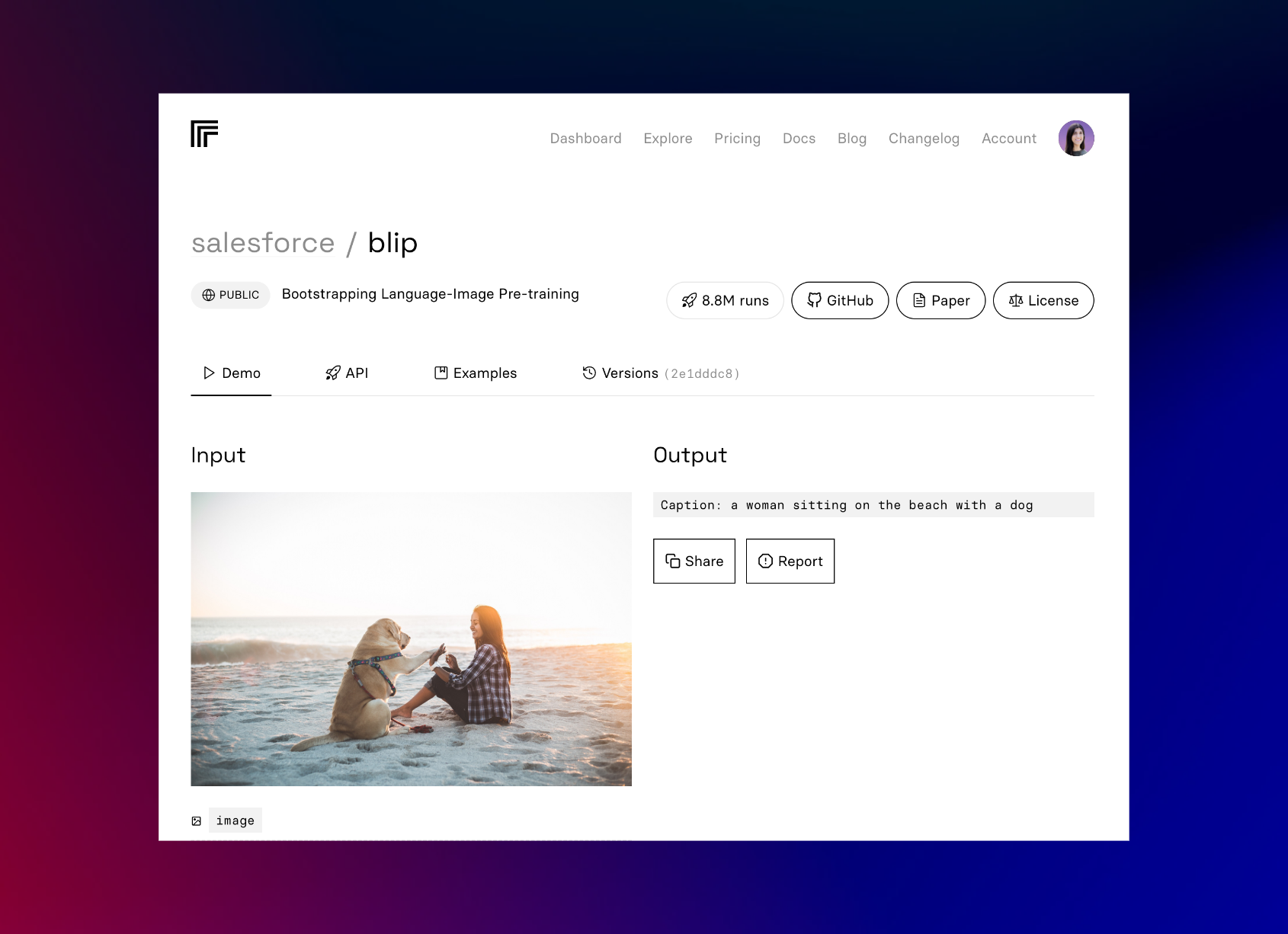 *Note: You can use Replicate for free, but after a bit you'll be asked to enter your credit card. The price varies depending on the model you use. The model we are using, salesforce/blip, costs approximately $0.00042 to run.