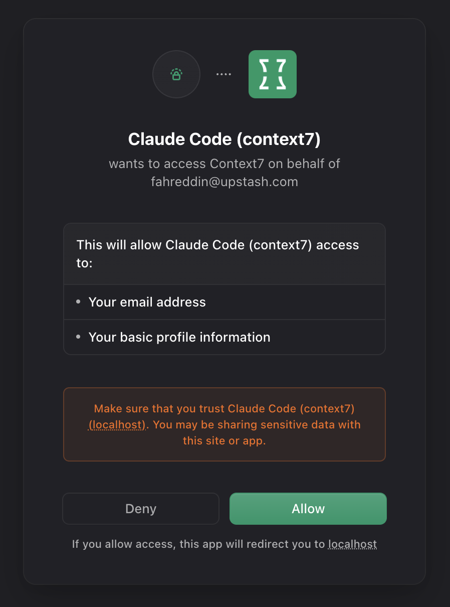 → context7.com/oauth/authorize (consent page with project selection)